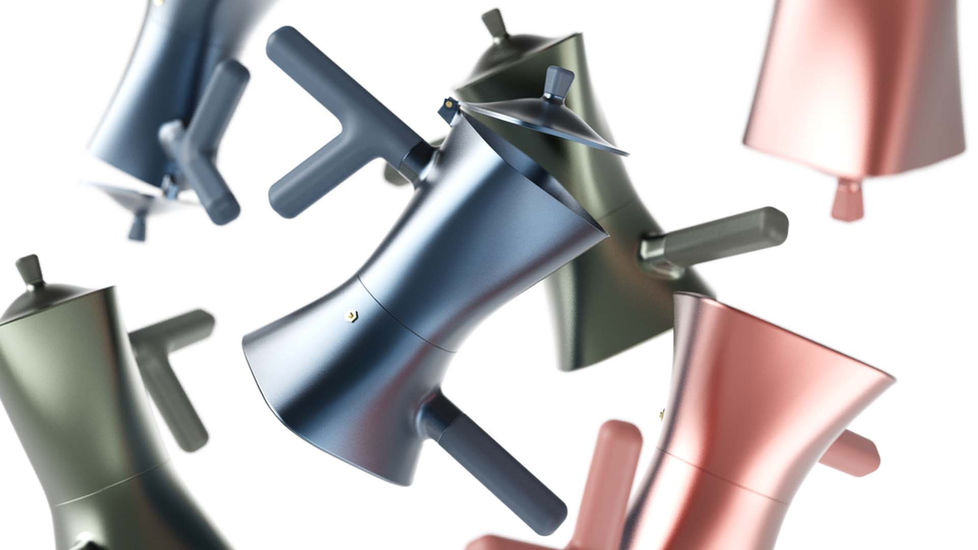 Inspired by my nonna, a woman who would refuse to give up her independence in the kitchen well into her 90s, the Elvira moka Twist provides the same classic moka experience with an easier twist. Many older users are unable to create a full twisted seal due to degenerative joint issues such as arthritis. The extended range of motion provided by the two handles significantly decreases wrist pain when tightly sealing the moka pot closed. The form itself captures the original moka pot features while seeming twisted itself, playfully hinting at the interaction between the user and the product.